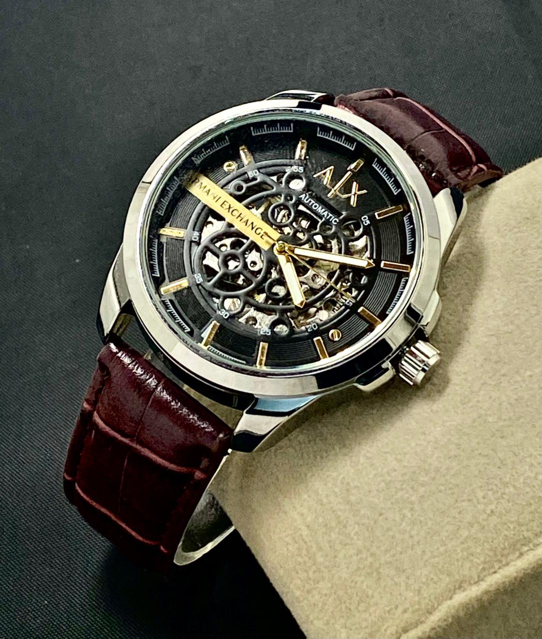 Introducing the Mankrafter AX Kinetic—a timepiece that boldly showcases its stunning, self-winding energy. Inspired by the sleek, modern aesthetic of Armani Exchange, this watch is a statement for the visionary.