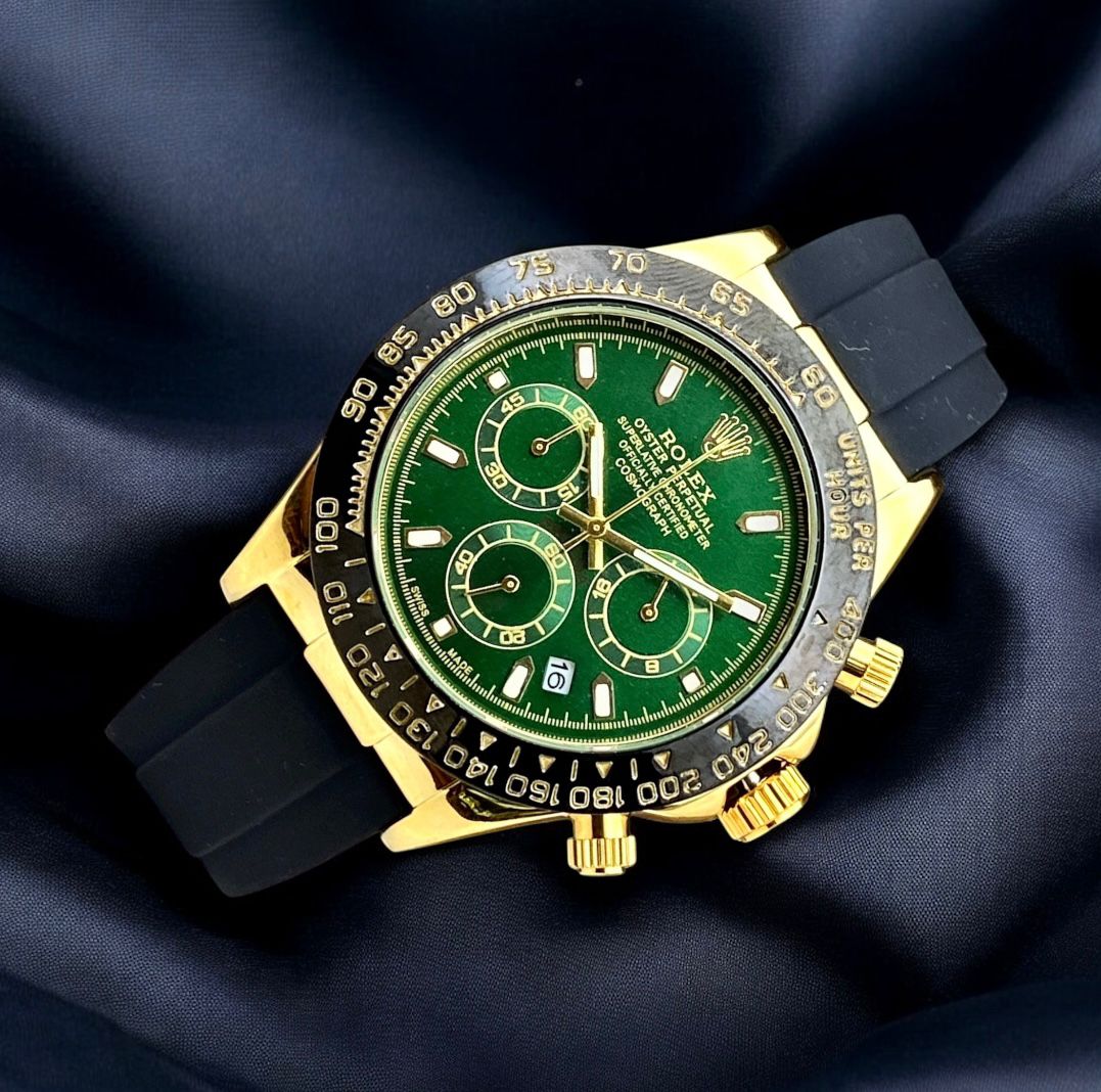 Experience the power of the stealth aesthetic. The matte black case houses a meticulously detailed chronograph dial that provides precision timing with three dedicated subdials. The bold, contrasting markers ensure perfect legibility, while the tachymeter bezel allows you to instantly measure speed and distance—your ultimate tool for calculating momentum.